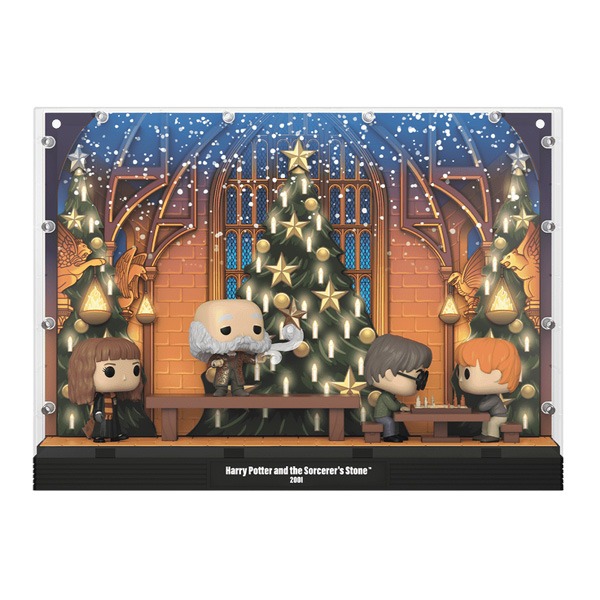 The characters of each moment are transformed into Funko Pop! vinyl figures and are assembled and displayed on a set of the corresponding moment or scene.